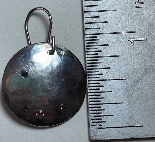 Sterling Silver Disk Earrings with Flush-Mounted Sapphires