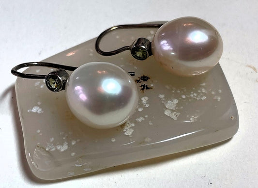 Large Pearl Drop & Peridot Earrings | Sterling Silver